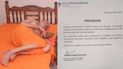 Bengaluru: Pejawara Sri Vishvesha Teertha, a saint of the Udupi Mutt, known for his phenomenal contributions to the society has been admitted to Kasturba Hospital, Manipal.