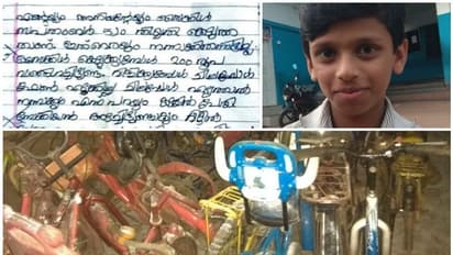 The school-going boy Abin of Vilayattoor Elampilad LP School wrote a petition on his school notebook page stating that he had given his and his brother’s cycles for repair on September 5.