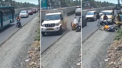 A road accident caught on camera in Kerala has gone viral on social media. The incident reportedly happened near 20th Mile Nandi Masjid in Koyilandy. A man on a scooty was struck by a Mahindra pickup truck while he was using his mobile phone. Fortunately, he was wearing a helmet and did not appear to suffer serious injuries.
