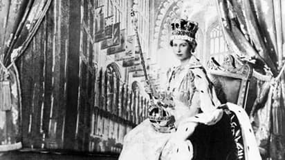 Image: Queen Elizabeth II posed in regalia at Westminter Abbey in London after being crowned in 1952.