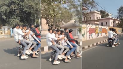 A shocking violation of traffic rules was reported on VIP Road in Madhya Pradesh's Bhopal, where seven young men were seen riding on a single motorcycle in broad daylight. The dangerous act was captured on video and shared on social media on Thursday and it quickly went viral.