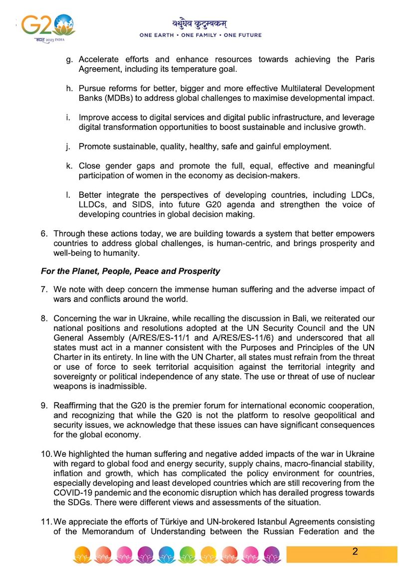As the details of the joint declaration are yet to be revealed, the achievement of consensus within the G20 offers hope for coordinated efforts in addressing pressing global issues and conflicts. The New Delhi G-20 Leaders' Summit provides a platform for leaders to collaborate on matters of international significance, with a particular emphasis on fostering cooperation for sustainable development and global stability.