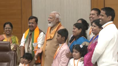 Prime Minister Narendra Modi met and interacted with the family members of newly elected BJP President Nitin Nabin as he assumed charge at the party headquarters in the national capital on Tuesday. During the occasion, PM Modi also shared sweets with Nitin Nabin. Union Home Minister Amit Shah, Defence Minister Rajnath Singh, Union Ministers Nitin Gadkari and JP Nadda were also present on this occassion.
