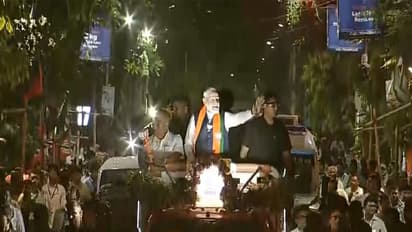 Prime Minister Narendra Modi on Sunday held a roadshow in North Kolkata amid the high-stakes West Bengal Assembly elections. Before embarking on his roadshow, Prime Minister Narendra Modi took the blessings of Ma Kali at Thanthania Kalibari.