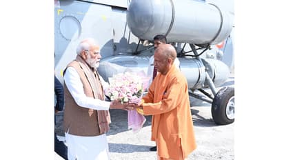 Uttar Pradesh Chief Minister Yogi Adityanath welcomed Prime Minister Narendra Modi on his visit to Meerut on Sunday. CM Yogi went to the airport to receive the PM Modi and felicitated him with a bouquet. In a post on X, Yogi wrote, "A heartfelt welcome and felicitation to the world's most popular politician, the esteemed Prime Minister Shri @narendramodi ji, who is ceaselessly serving to make the lives of 1.45 billion Indians seamless, simple, and effortless, on his revolutionary visit to Meerut."