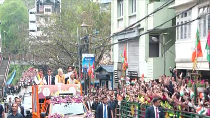 Prime Minister Narendra Modi on Monday held a roadshow in Gangtok and was warmly welcomed by people who enthusiastically cheered and waved as his convoy made its way through the city.