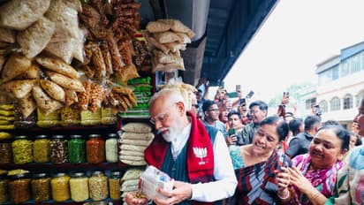 After completing a power-packed schedule of four back-to-back rallies in Purulia, Jhargram, Medinipur and Bishnupur, Prime Minister Narendra Modi was seen unwinding in a light-hearted moment as he relished West Bengal's popular street snack "Jhalmuri" near a small local shop.