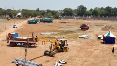 The public meeting venue is being set up across an area of about 22 acres near Edamalaipatti Pudur in Trichy. Extensive arrangements are underway for the event organised by the NDA.