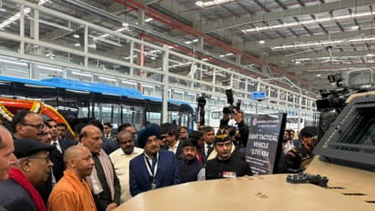 Defence Minister Rajnath Singh visited Ashok Leyland's manufacturing plant in Lucknow on Friday. During his visit for the inauguration of the EV plant, he reviewed the production of Light Tactical Vehicles, Unmanned Ground Vehicles, Mine Protected Vehicles and Logistics Drones manufactured at the facility. Uttar Pradesh Chief Minister Yogi Adityanath was also present during this visit.