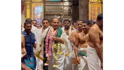 Defence Minister Rajnath Singh visited the historic Sri Subramanya Swami Temple in Tiruchendur, Tamil Nadu, on Monday to offer prayers and seek blessings. The visit to the coastal shrine forms part of the Union Minister's schedule in the southern state. Singh, in a post on X, shared, "Prayed at the sacred Sri Subramanya Swami temple in Tiruchendur (Tamil Nadu). Feeling blessed to experience the divine energy of this Temple."