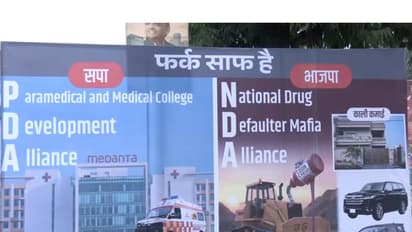 Targeting the National Democratic Alliance (NDA) over the ongoing codeine-based cough syrup smuggling case, the Samajwadi Party (SP) on Tuesday installed hoardings outside its office in Lucknow, intensifying the political face-off between the opposition party and the ruling Bharatiya Janata Party (BJP). The hoardings juxtaposed the Samajwadi Party and the NDA. While the SP side redefined PDA as the "Paramedical and Medical Development Alliance," the NDA was labelled as the "National Drug Defaulter Mafia Alliance," clearly signalling the party's criticism of the ruling alliance. The move comes amid escalating political sparring between the BJP and the Samajwadi Party over the codeine-based cough syrup case, which has triggered widespread debate in the state's political circles.