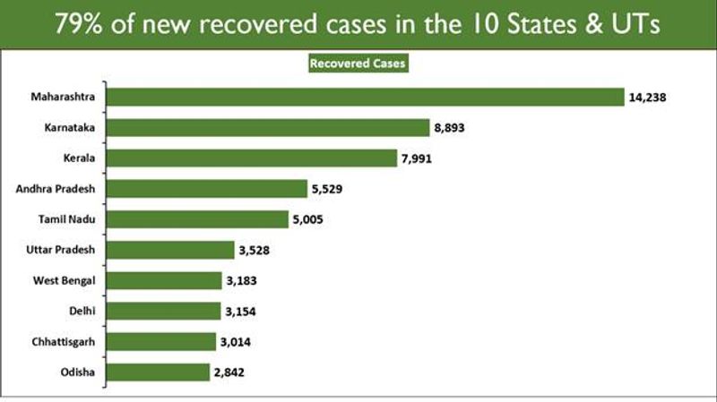 79% of the new recovered cases are observed to be concentrated in 10 States/UTs.