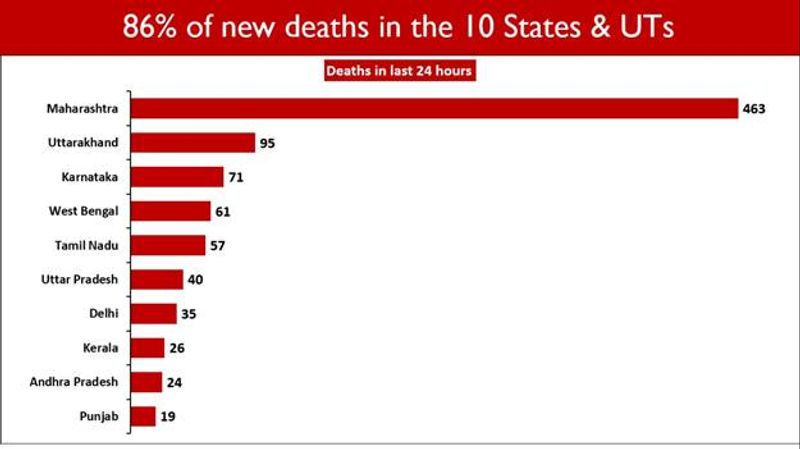 Of these, ten States/UTs account for nearly 86%. More than 44% of new fatalities reported are from Maharashtra (463 deaths).