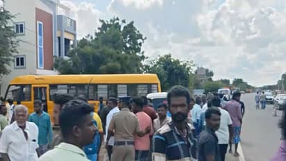 The bus, belonging to Vasan Matriculation Higher Secondary School, was on its routine route picking up students from surrounding villages. While turning left from the Madurai-Rameswaram National Highway to enter the school premises, the bus was struck from behind by a tipper truck carrying boulders, causing the bus to overturn.
