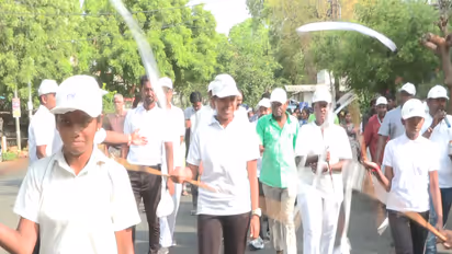 Ahead of the upcoming Tamil Nadu Assembly elections, a voter awareness rally was held in Tiruchirappalli district on Saturday to emphasise 100% voter participation. The awareness rally was jointly organised by My Bharat Kendra, Tiruchirappalli district, and Veeramangai Velu Nachiyar Youth Association. Around 1,000 women silambam (ancient weapon-based martial art originating from Tamil Nadu) practitioners took part in the rally, performing silambam as they marched from Kalai Kaviri College of Fine Arts.