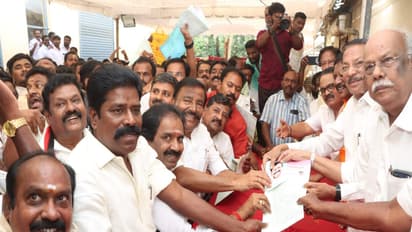 On the same occasion, Tamil Nadu School Education Minister and Tirchy South District DMK Secretary Anbil Mahesh Poyyamozhi also submitted his application seeking to contest from the Thiruverumbur Assembly constituency in Tiruchi district.