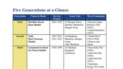 The fourth generation, Colonel Bipin Kumar Shukla, continues to serve in the Indian Army.