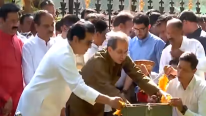 Amid the confirmation of the UBT Sena-MNS alliance, Shiv Sena (UBT) Chief Uddhav Thackeray and MNS Chief Raj Thackeray, accompanied by their wives, paid tribute to party founder Balasaheb Thackeray at his memorial in Shivaji Park here on Wednesday. This marks the coming together of the cousins ahead of a formal announcement of an alliance for the BMC elections in January. Shiv Sena (UBT) leader Aaditya Thackeray and MNS leader Amit Thackeray were also present during the homage.