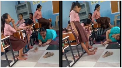 A headmistress of a government primary school in Uttar Pradesh's Chitrakoot district was suspended on Friday after a video showing her getting foot massage by a student during school hours went viral. The viral clip reportedly shows the headmistress, Madhu Rai, lying on the floor of a classroom looking into her mobile phone while girls of grade V, in school uniform, are sitting on benches and one of them is giving her foot massage.