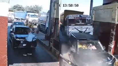 In a terrifying incident at the Semri Toll Plaza on the Kanpur Highway in Jhansi, Uttar Pradesh, a speeding truck crashed into two stationary cars, leaving several passengers and a toll employee seriously injured. The crash, which occurred on Saturday at around 2:00 pm, was captured on the plaza’s CCTV cameras and caused panic among toll staff and motorists. According to eyewitnesses, the accident happened while vehicles were halted due to a FASTag scanner malfunction. The force of the impact sent the toll worker flying onto the bonnet of one of the cars before the truck dragged the vehicles for over 50 metres.