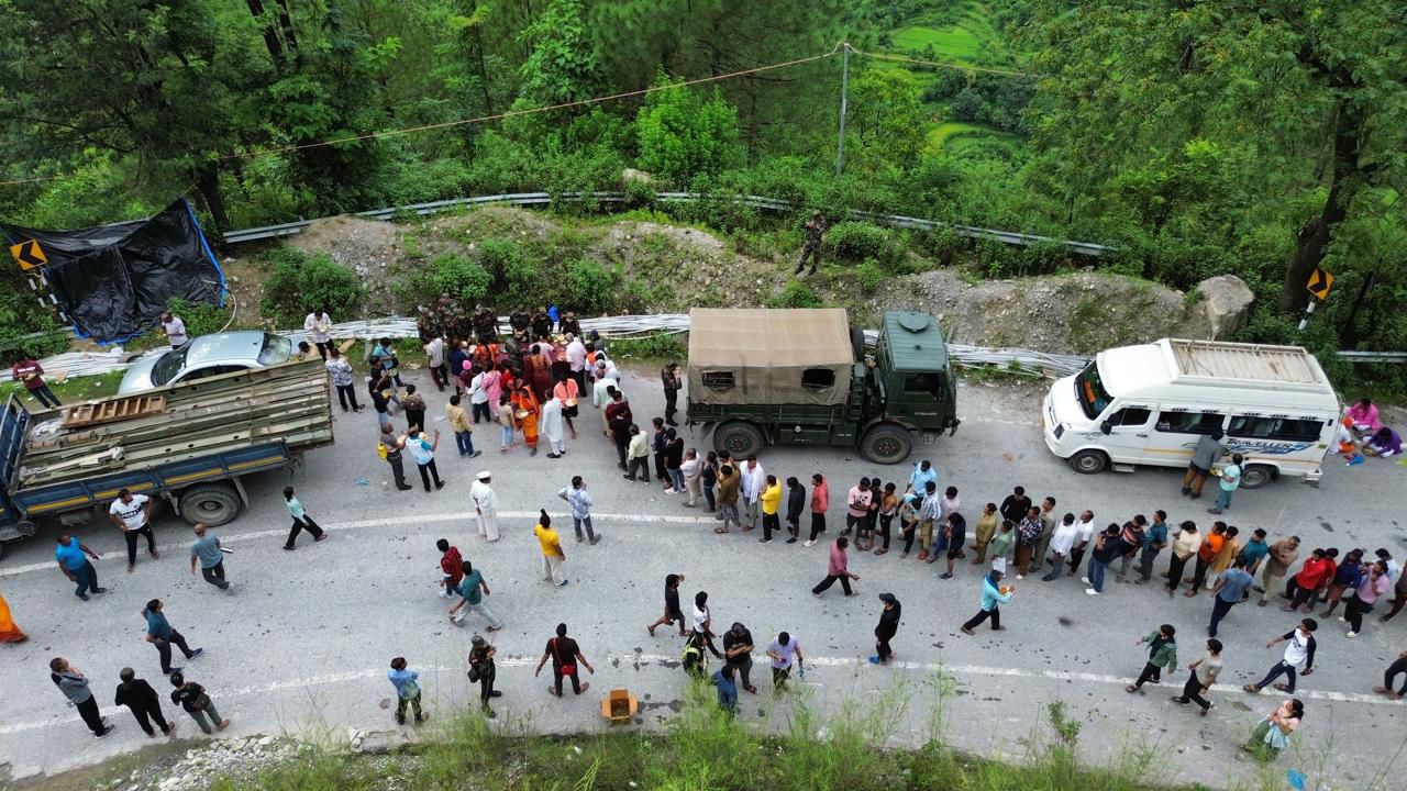 People trapped in the Dharali-Harsil disaster are being rescued through helicopters and brought to Matli helipad, from where arrangements have also been made to ensure their safe arrival at their destination. The army camp in Harsil, which was swept away due to a cloudburst, paints a gory picture of the flash floods with its dilapidated remains. At least five people have been reported dead, and 50 are still missing. The equipments used include a victim locating camera and thermal imaging camera. Dog squads have been deployed alongside rescue personnel to search for stranded individuals. The mobile network was restored in the disaster-hit Harsil valley. However, the landslides have disrupted the Char Dham Yatra.