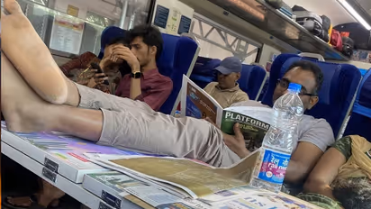 A photo of a man resting his bare feet on a tray table aboard a Vande Bharat Express has sparked criticism for his lack of civic sense and cleanliness. Kohina, an X user, uploaded a photograph of a man reading a book with his feet resting on a folding tray table designed for food service. An Indian Railways passenger initially shared the image on Reddit, describing the behaviour as "honestly infuriating".