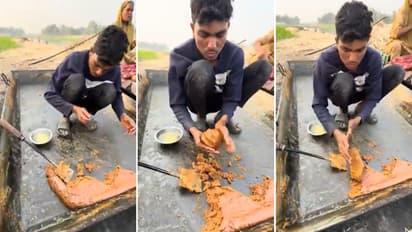 A video showing a man making jaggery has gone viral on social media, raising serious questions about hygiene and food safety. In the clip, the man is seen sitting inside a large metal tray while shaping jaggery with his bare hands and wearing slippers, which has upset many viewers.