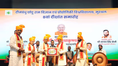 In a post on X, VP said, "Graced the 8th Convocation of Deenbandhu Chhotu Ram University of Science & Technology in Murthal, Haryana today. Congratulating the graduates, the Vice President noted with pride that 64% of gold medal winners are women, reflecting the positive impact of initiatives like Beti Bachao Beti Padhao. He urged students to embrace emerging technologies, contribute to nation-building, and work towards the vision of Viksit Bharat under the leadership of Prime Minister Narendra Modi."