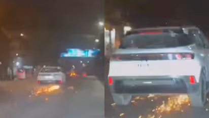 Motorists travelling along the flyover noticed sparks flying from beneath a rashly driven Hyundai Creta. On moving closer, they were alarmed to find a Royal Enfield Bullet motorcycle lodged at the front of the SUV. Despite repeated honking and shouts from other commuters, the driver continued driving without stopping.
