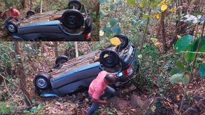 The vehicle had apparently fallen from a height of around 50 feet and was found lying upside down, with all four wheels facing upwards. There is no information about who was travelling in the car, how many occupants were inside, or where they had come from.