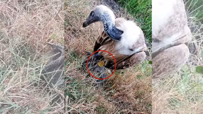 Locals who saw the large bird sitting in an unusual condition on the farm immediately called 112. Upon receiving the information, the police rushed to the spot, took the vulture into custody, and moved it to the Jhalki police station. An identification number tag was found attached to the vulture's leg, making it clear that a scientific study was being conducted on the bird.