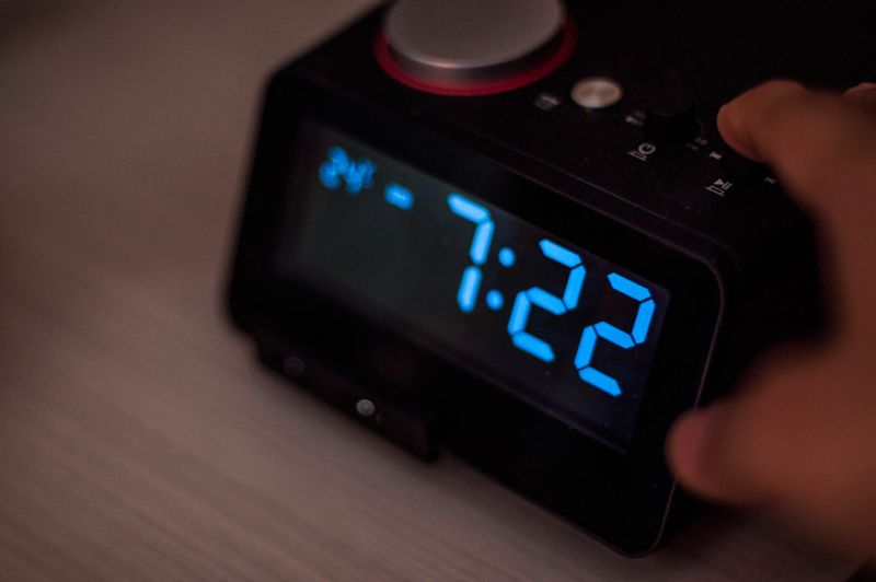 Instead of hitting snooze a bunch of times, set one alarm for the latest time you can wake up. This will encourage you to get up quickly, and if you place the alarm across the room, it gives you an extra reason to get moving.