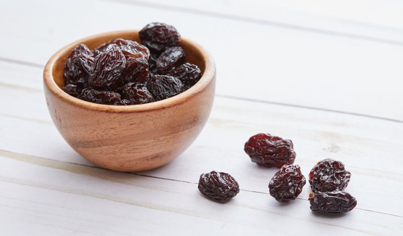 Iron Source: Raisins are a good source of iron, which is essential for red blood cell production and preventing iron deficiency anemia.