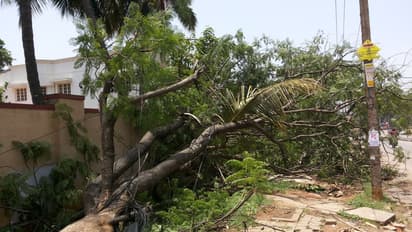 In addition to this, one tree in BTM layout, behind the Viresh talkies on Magadi road, Vaiyalikaval road was uprooted too.