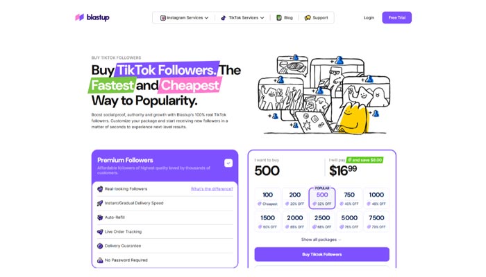 The service also has a 4.8 rating on Trustpilot, indicating that Blastup delivers a good job for most customers. This means you can count on receiving a positive experience, but you don’t need to take their word for it. Try the free trial to test the features and quality of followers before parting with your money.