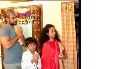 Looks like the couple has left behind the differences as Darshan was seen performing Ayudha Pooja with his wife and son at his Rajarajeshwari Nagar house.