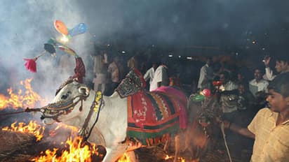 Now, be it Jallikattu, cockfight (popular in Karnataka as well as Andhra Pradesh) or making the bull leap through the fire it is surely painful for the animals/birds you have reared with love and care. Tamil Nadu held Jallikattu and Andhra Pradesh held cockfight despite a ban on these sports. So far, there is no ban on the practice making these animals leap through the fire. But the common logic that it hurts the animal must be an enough reason for people to stop this practice. Makara Sankranthi is also known as the festival of prosperity, people put colourful decorations (rangoli) in front of their houses, get decked themselves and also decorate their cows and oxen.