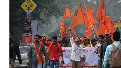 For the first time, Vijaywada, known for Left and gang-war politics, today turned saffron because of the protest rally by these organisations. The chant of 'Jai Sri Ram' filled the air.