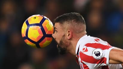 Jonathan Walters of Stoke City controls the ball with his nose during the Premier League match between Stoke City and Southampton at Bet365 Stadium on December 14, 2016 in Stoke on Trent, England. (Photo by Michael Regan/Getty Images)