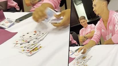 The Fulham defender then asks one of the club's backroom staff to cut the cards again.