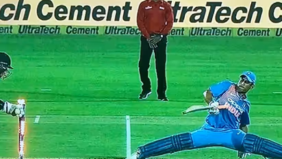 But while on the field Dhoni showed his acrobatic skills when a wide ball from Mitchell Santner went to wicketkeeper Glenn Phillips’ hands. Dhoni had stepped out of the crease and Phillips had dislodged the bails. But before he could do that Dhoni had stretched his legs wide, almost in the shape of a perfect split, placing his right leg inside the crease in the nick of time.