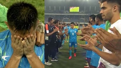 Chhetri, after being intrinsically tied to Indian football for 19 years, was seen in tears after the final whistle of the clash was blown.ย A sea of blue, with most fans donning Chhetri's No. 11 jersey, erupted at the Salt Lake Stadium as the long-serving India captain bid drew curtains to his international career.