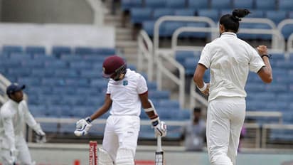 After another rain break then, Darren Bravo (20) joined Kraigg Brathwaite (23), and the duo never looked comfortable at the crease, particularly against Mohammed Shami (2-25) who used the conditions well. He used the short ball to good effect against Bravo, hitting him on the forearm and the batsman was never confident thereafter. Somehow the two managed to stay at the wicket, as rain threatened to break play again.