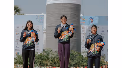 Earlier, Ashmita Chandra completed a double by adding the women's 5km Open Water Swimming gold to the women's 10km title she had won on Friday. In the 5km race, Ashmita clocked a timing of 1:35:11s to clinch the gold medal ahead of Diksha Yadav (1:35:53s) of Maharashtra. Karnataka's Aasra Sudhir won the bronze medal with a time of 1:39:14s.