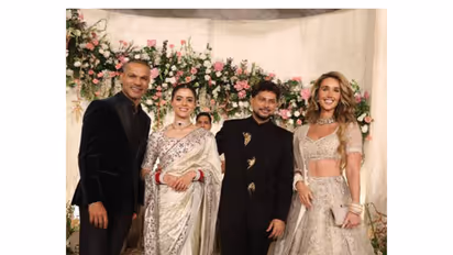 Former Indian cricketer Shikhar Dhawan and his wife Sophie attended the wedding reception of Indian cricketer Kuldeep Yadav and Vanshika in Lucknow on Tuesday. In a post on Instagram, Shikhar Dhawan uploaded pictures from Kuldeep's reception and congratulated the Indian spinner and his wife, Vanshika. "Congratulations to the beautiful couple @kuldeep_18 & Vanshika. Wishing you both a lifetime of love and happiness," reads the caption of Shikhar Dhawan's post.