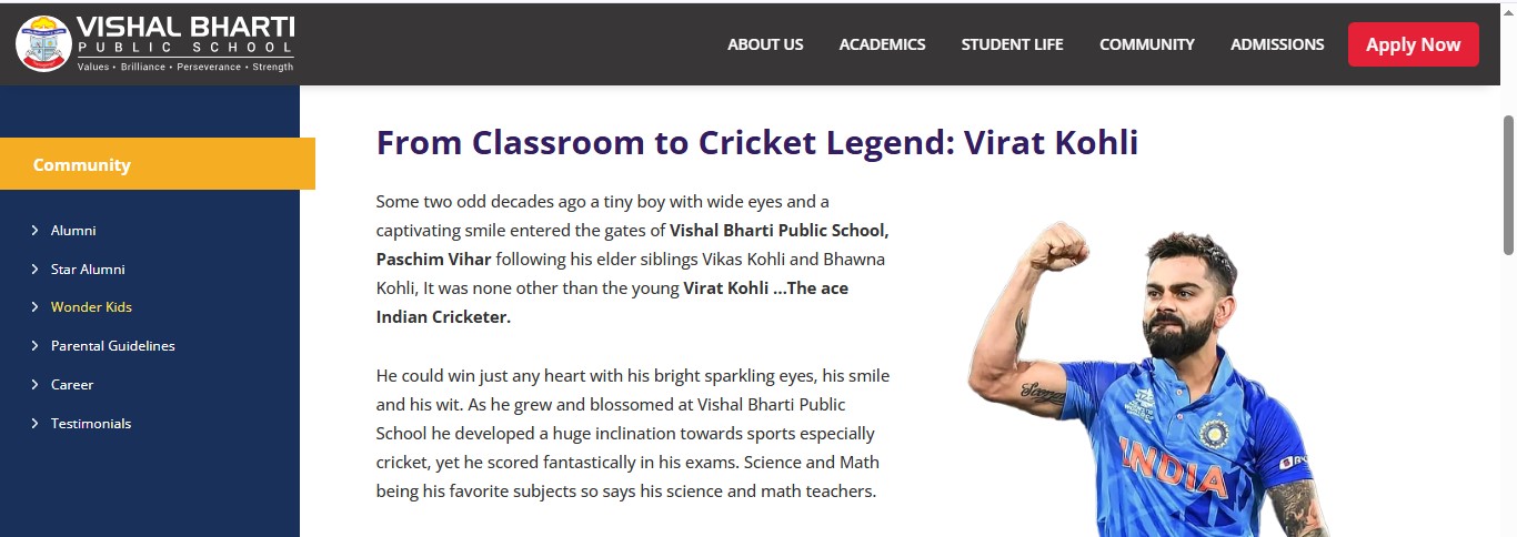 On Vishal Bharti Public School’s website, Vibha Sachdev recalled Kohli as ‘bright’ and ‘determined student ', adding that his eyes were expressive.
