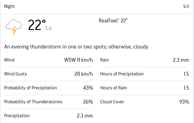 As per the AccuWeather, Bengaluru is likely to experience a slight cold with a temperature of 22 degrees celsius during the night, as the match begins at 7:30 pm. The possibility of rain and thunderstorms is 43% and 26%, which means the match between Royal Challengers Bengaluru and Chennai Super Kings will likely have a brief interruption of play, but complete washout is unlikely at this stage. The cloud cover in Bengaluru is expected to be 99% in the night, indicating that overcast conditions might lead to intermittent showers but unlikely to cause complete washout of the match.