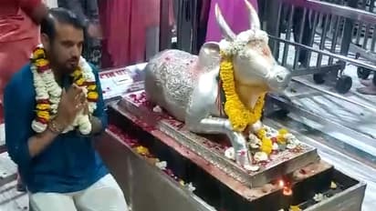 Former Indian cricketer Siddarth Kaul and current cricketer Karn Sharma visited the Mahakaleshwar Temple in Ujjain on Thursday. Both Siddarth and Karn also took part in the Bhasma Aarti at the temple.