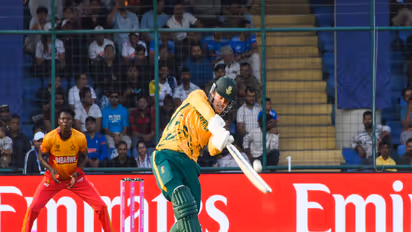 David Miller joined Dewald Brevis at the crease, and the duo added 50 runs for the fourth wicket before Blessing Muzarabani broke their partnership in the 10th over. Miller departed after making 22 off 16 balls with the help of a couple of sixes and as many fours.