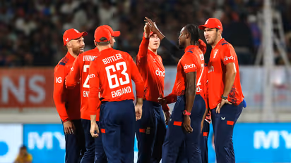With the win, England have virtually knocked Pakistan out of the tournament. Chasing 165, England stumbled early to 58/4 before Brook counter-attacked with a historic 100 off just 50 balls -- the first century by a captain in T20 World Cup history. Despite a late collapse and a four-wicket haul (4/30) from Shaheen Afridi, England held their nerve, with Jofra Archer striking the winning boundary to finish at 166/8 in 19.1 overs.